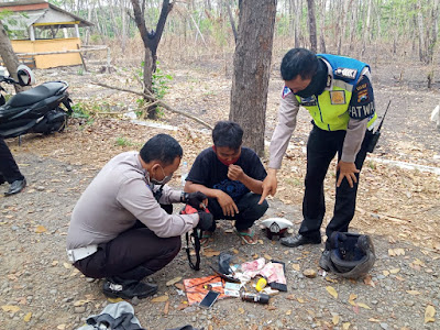 Petugas melihat gelagat mencurigakan ketika memberhentikan pengendara kendaraan roda dua dengan No Pol AG 2621 WF. Setelah diberhentikan pengendara kendaraan roda dua tersebut terlihat membuang sesuatu benda.