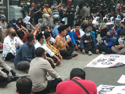 Agung koordinator Aliansi Mahasiswa meminta kepada anggota DPRD Magetan untuk ikut menolak dan membatalkan RUU Omnibus Law.