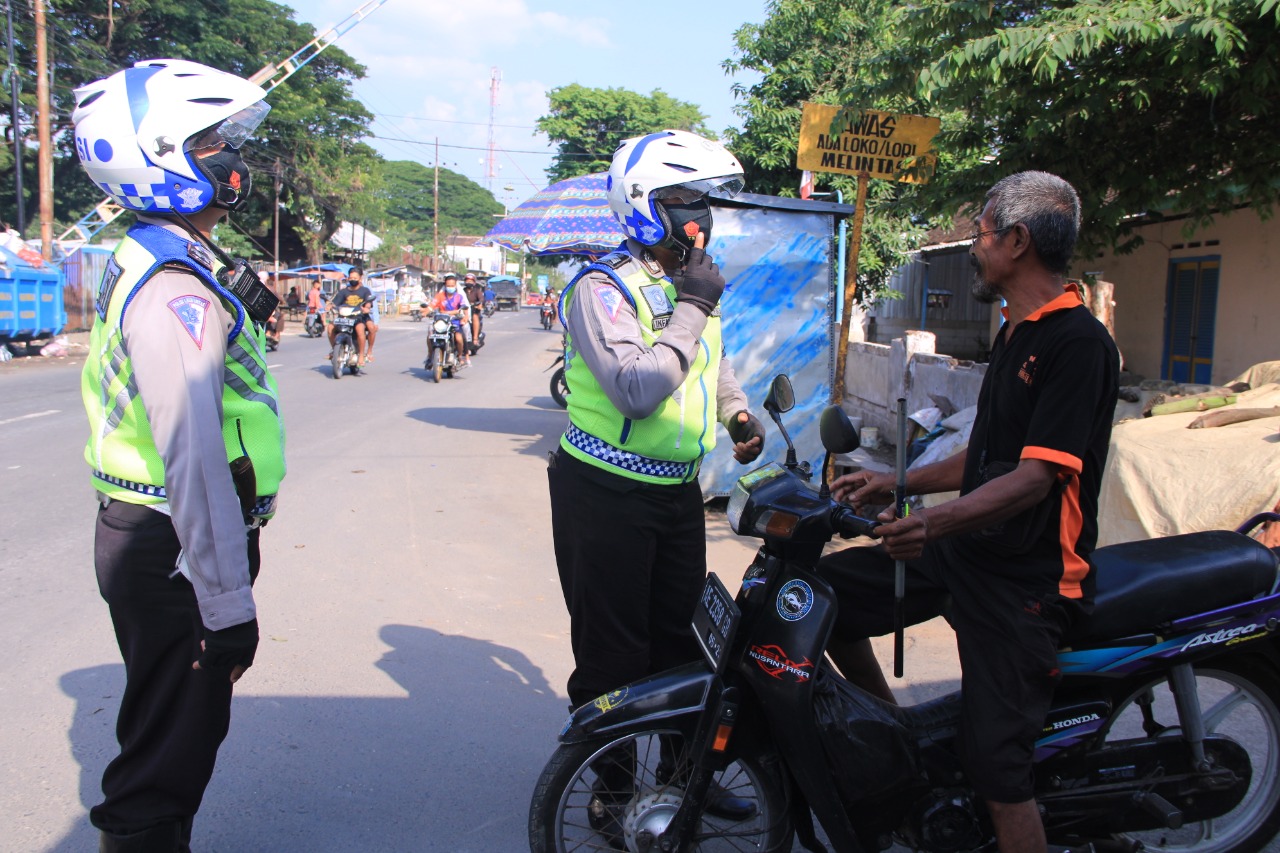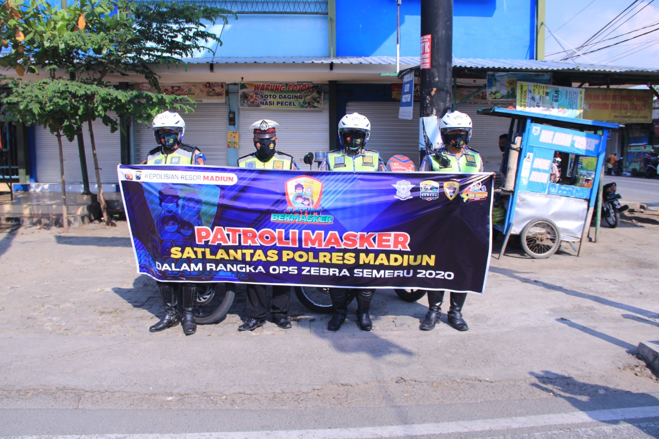 Dalam pelaksanakan patroli, Kasat Lantas Polres Madiun AKP Ari Bayuaji memberikan imbauan serta teguran kepada masyarakat yang bergerombol serta tidak memakai masker.