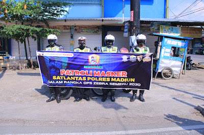 Dalam pelaksanakan patroli, Kasat Lantas Polres Madiun AKP Ari Bayuaji memberikan imbauan serta teguran kepada masyarakat yang bergerombol serta tidak memakai masker.