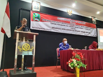 Plt Bakesbangpol Kab. Magetan Drs. Iswahyudi Yulianto,MSI mengatakan, Sosialisasi UU RI No 16 Th 2017 Tentang Penetapan Peraturan Pemerintah Pengganti UU No 2 Th 2017 tentang Perubahan Atas UU No 17 Th 2013 tentang Organisasi Kemasyarakatan Menjadi UU Bupati Magetan bertujuan untuk memberikan pemahaman tentang isi dari UU tersebut sehingga Ormas yang ada di Kabupaten Magetan dapat berjalan sesuaui peraturan yang ada.