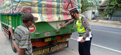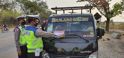 Himbau Pencegahan Penyebaran Virus Covid 19, Anggota Satlantas Tempel Stiker ke Kendaraan Umum
