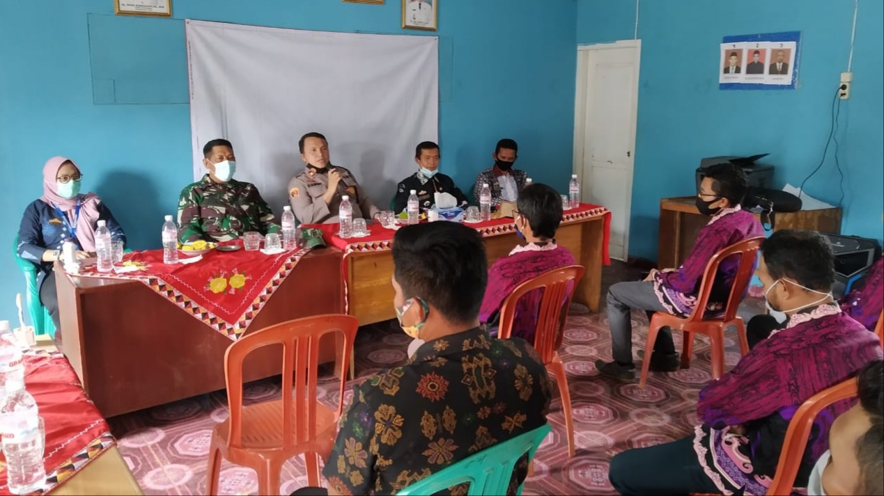 Seputarkita, Tanggamus – Kapolsek Pulau Panggung Polres Tanggamus Iptu Ramon Zamora, SH bersama Unsur Pimpinan Kecamatan (Uspika) melaksanakan sosilasiasi dan pembinaan di Pekon Penantian, Ulu Belu, Kamis (12/11/20).