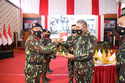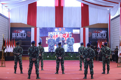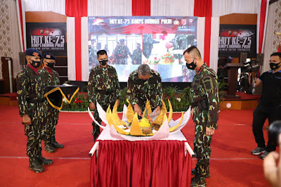 Usai upacara HUT korps Brimob Ke 75, dilanjutkan dengan acara kegiatan Syukuran HUT Brimob dan pemotongan tumpeng.(Leo)