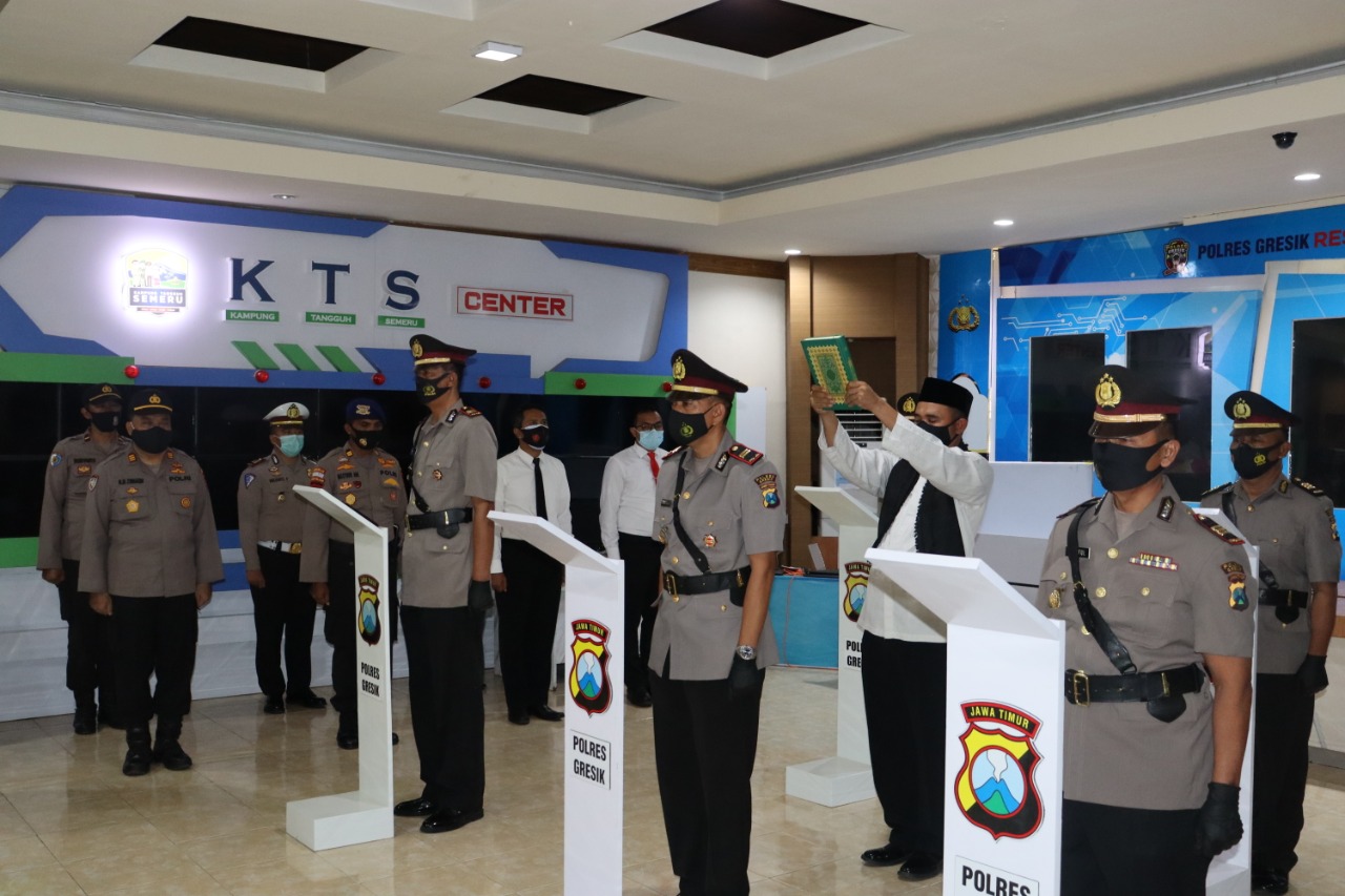 Upacara serah terima jabatan diikuti pejabat utama Polres Gresik dan Perwira Polres Gresik dengan tetap menggunakan protokol kesehatan.