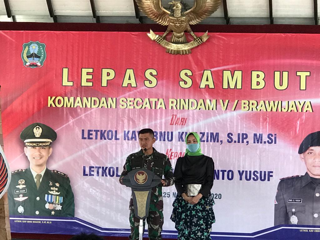 SeputarKita, Magetan – Tongkat Komando Pimpinan Secata Rindam V/ Brawijaya kembali berpindah dari Letkol Kav. Ibnu Khazim.S.IP,Msi kepada Letkol Kav. Endi Siswanto Yusuf. Estafet kepemimpinan di Secata Rindam V/Brawijaya ditandai dengan lepas sambut yang digelar di Peendopo Surya Graha, Rabu (25/11/2020)
