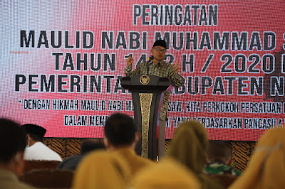 SeputarKita, Ngawi – Pemerintah Kabupaten Ngawi gelar peringatan Maulid Nabi Muhhamad SAW Tahun 1442/2020 M. Bertempat di Pendopo Wedya Graha, Senin (23/11/20), dengan menghadirkan pemceramah dari pimpinan dan pengasuh Pondok Pesantren Mahasiswa AL – Jihad Surabaya, Imam Hambali.