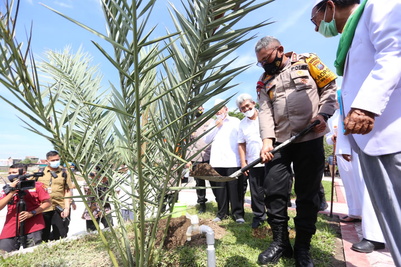 “Semoga pohon kurma yang kita tanam hari ini dapat tumbuh dengan subur dan memberikan manfaat untuk masyarakat”, ucap Kapolda Sumut.