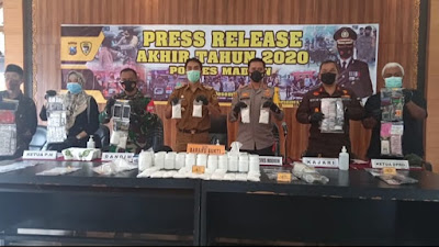 Saat di gelar konfrensi pers kapolres Madiun Akbp R Bagus Wibisono menjelaskan. “Untuk kasus yang terjadi pada tahun 2020 ini ada peningkatan dan ada juga penurunan di banding tahun 2019 ini. Untuk kasus yang mengalami peningkatan dan penurunan yaitu terkait kriminalitas di tahun 2020 ada penurunan, kasus Narkoba ada kenaikan, kasus Tipiring Naik. Untuk kejadian laka lantas di jalur arteri ada penurunan tetapi laka lantas di jalan tol ada kenaikan.” Terangnya.