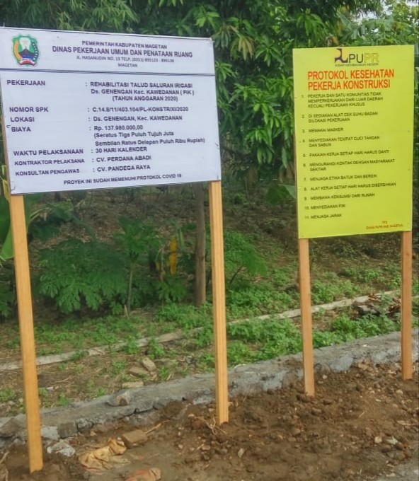 Meskipun dimasa Pandemi Covid-19 saat ini, tak menjadi hambatan Pemerintah Kabupaten Magetan melalui Dinas Pekerjaan Umum dan Penataan Ruang (DPUPR) Magetan untuk terus melakukan kegiatan pembangunan infrastruktur di Kabupaten Magetan. (Nur)