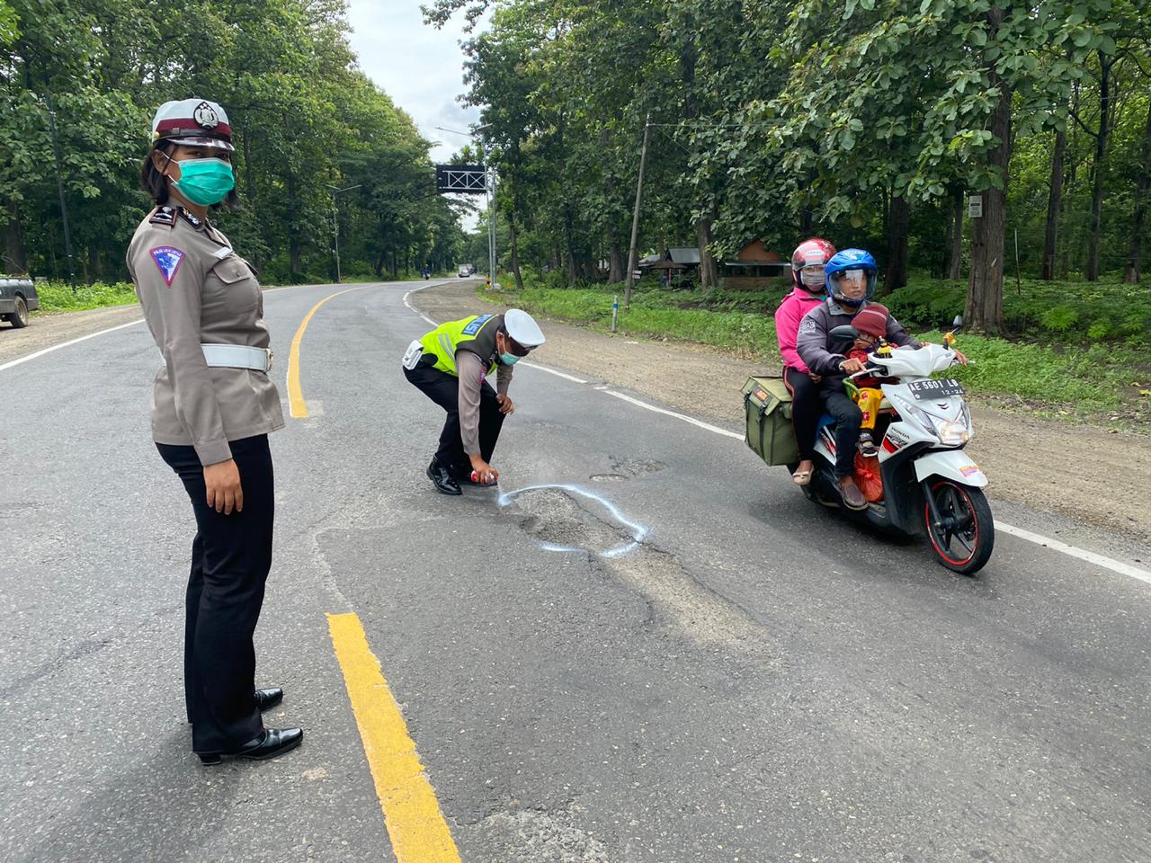 “Satlantas hari ini melakukan pengecekan jalan rusak dan berlubang. Jalan yang rusak dan berlubang kita kasih tanda dengan mengecat warna putih,” terang Ari di Polres Madiun, Selasa (15/12/2020).