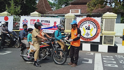 SeputarKita, Magetan – Badan Pengurus Kabupaten Organisasi Kemasyarakatan Oi (BPK Oi) Kabupaten Magetan dengan Pasukan Relawan OI Crisis Centernya (OCC) bekerja sama dengan JIP (Jaringan Indonesia Positif) Kabupaten Magetan mengadakan kegiatan bersama bagi – bagi masker dan stiker “STOP Stigma dan Diskriminasi” di perempatan Alon – Alon Magetan tepatnya di bundaran monumen Soeryo. Kegiatan ini dalam rangka ikut memperingati hari AIDS sedunia. Selasa (1/12/2020)