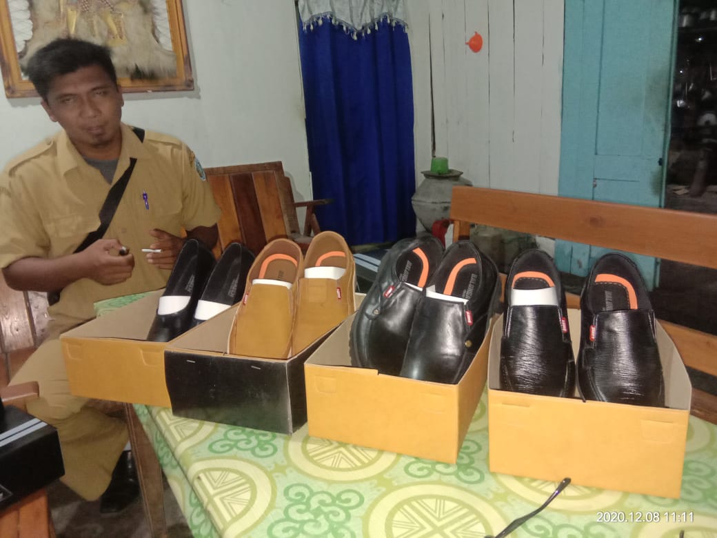 Kades Bowo Fitrianto dgn produk Sepatu unit usaha Bumdes Sejahtera