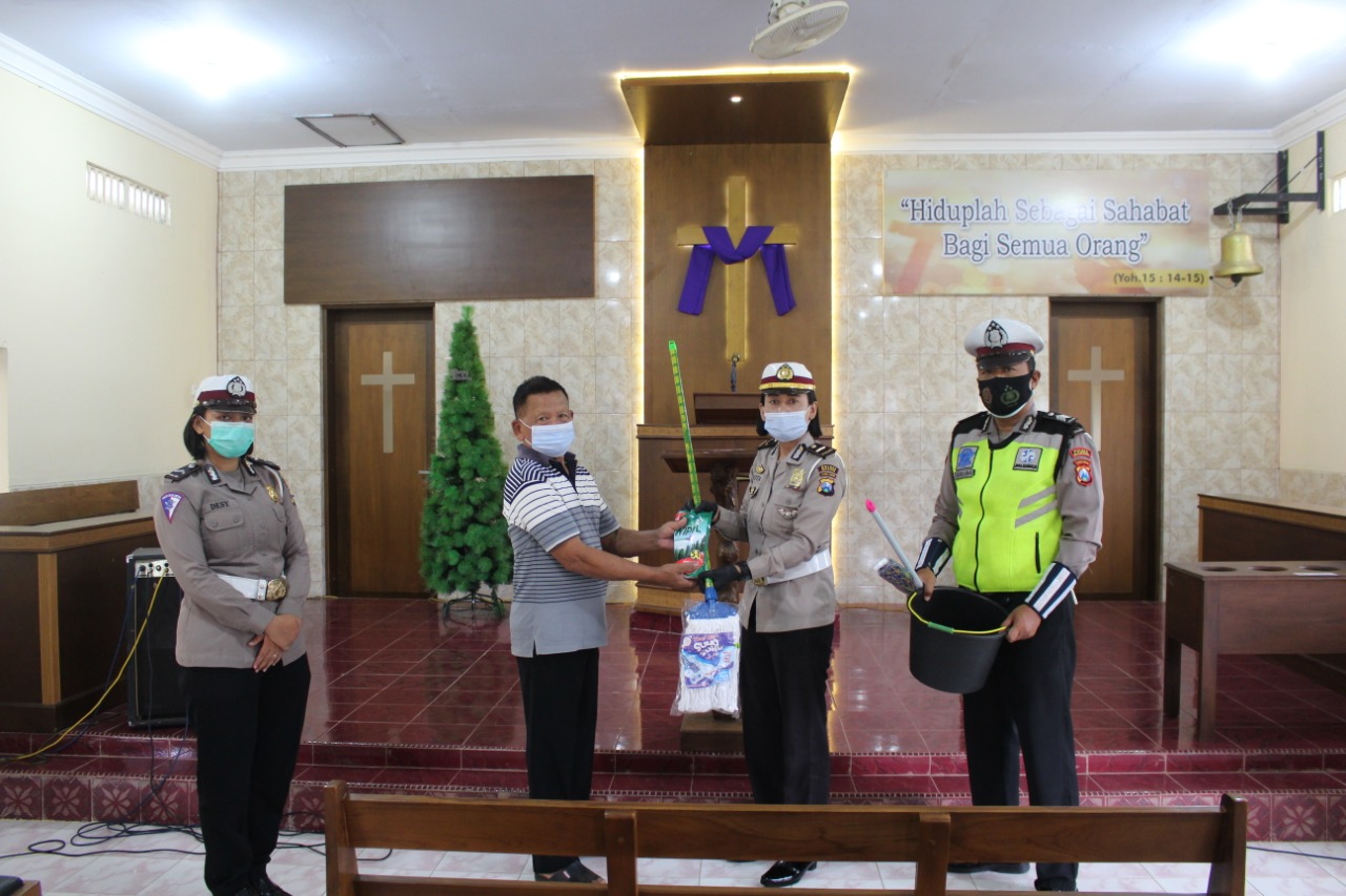 SeputarKita, Madiun – Dalam rangka menyambut Perayaan Natal tahun 2020 Satlantas Polres Madiun melakukan peninjauan di beberapa gereja yang berada di wilayah kabupaten Madiun. Kegiatan ini di lakukan guna mengantisipasi serta pencegahan adanya penyebaran virus covid 19 yang saat ini mengalami peningkatan. Jadi perayaan Natal di tahun 2020 ini berbeda dengan perayaan tahun sebelumnya, karena masih dalam Pandemi Covid-19. Agar Covid 19 tidak menyebar saat perayaan Natal, untuk gereja yang di kunjungi salah satunya yaitu Gereja Kristen Jawi Wetan Pepantan Kresek Kec. Wungu.