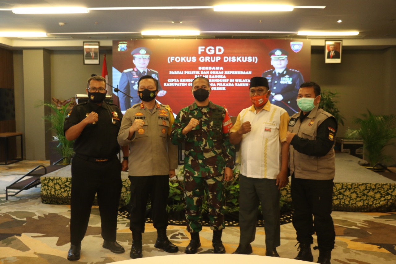 FGD yang dimoderatori KH Moch Thoha, Ketua Forum Pembauran Kebangsaan Kabupaten Gresik ini dihadiri langsung oleh Kapolres Gresik AKBP Arief Fitrianto, Dandim 0817 Gresik Letkol Inf Taufik Ismail, Kakan Kesbangpol Gresik Darman, OJU Polres Gresik, Kapolsek Jajaran Polres Gresik, para ketua Parpol di Kabupaten Gresik, Perwakilan Ormas kepemudaan,PD Aisiyah, PKK Kabupaten Gresik, Persit (KCK) Kartika Candra Kirana Cabang XLIV Kodim 0817 Gresik, Bhayangkari Cabang Gresik serta Fatayat dan Muslimat NU Kabupaten Gresik