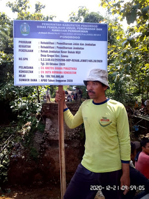Untuk mengklarifikasi masalah jembatan ini, awak media seputar kita menghubungi Kepala Bidang Bina Marga, Dinas Pekerjaan Umum dan Perumahan Rakyat (DPUPR) Kabupaten Ponorogo, menurut Kartijo Siho masalah pembangunan jembatan di Desa Grogol sudah sesuai dengan tekhnik dan diarah kan untuk mengkorfirmasi Pihak Pelaksana CV Kreteg Graha Pinastika.
