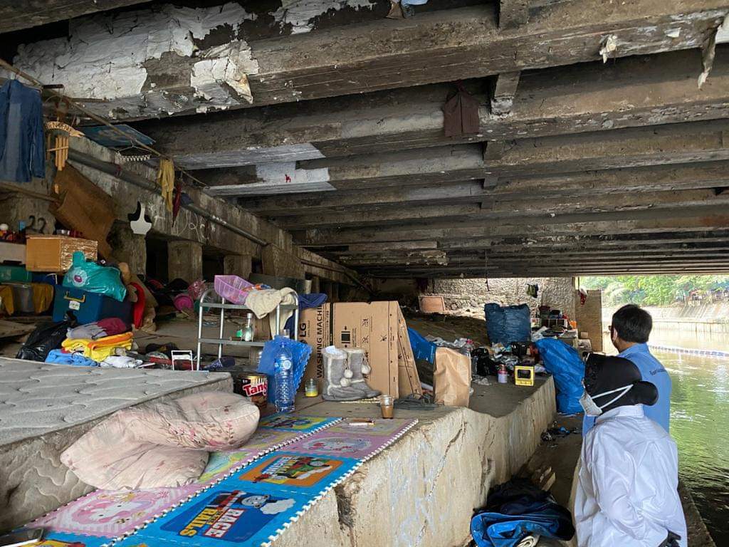 Persis di kolong jembatan, Risma menyaksikan beberapa keluarga yang sengaja tinggal di bawah kolong jembatan. Di salah satu sudut, tampak salah satu lokasi hunian gelandangan. Di sini terlihat di antaranya kasur gulung lusuh, almari butut, perangkat mandi, dan sandal jepit berserakan di sekitarnya, yang ditinggal penghuninya.