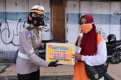 Kepada media seputar kita Kasatlantas Polres Madiun Akp Ari Bayuaji mengatakan.”Dalam rangka memperingati hari Ibu, Polwan Satlantas Polres Madiun membagikan paket sembako dan bunga kepada masyarakat, khususnya untuk ibu-ibu yang sedang bekerja di luar untuk mencari nafkah untuk mencukupi kebutuhan keluarga,” kata Ari di Mapolres Madiun, Selasa (22/12/2020).