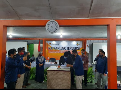Setelah hasil penetapan rekapitulasi suara Pilkada Pemalang 2020 tingkat Kabupaten, dilakukan penandatangan berita acara oleh Ketua dan seluruh Komisioner KPU, seluruh saksi pasangan calon, dengan disaksikan Ketua dan anggota Bawaslu. (Nur)