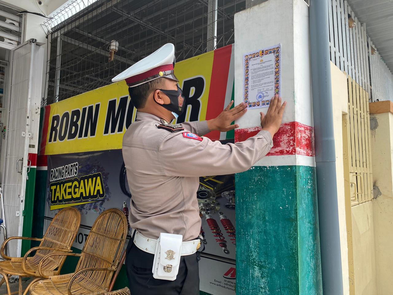 Satlantas Polres Madiun memberikan himbauan agar bengkel motor tidak menerima modifikasi knalpot brong yang menimbulkan suara berisik. Himbuan ini tentu saja berlaku untuk semua bengkel motor yang ada di wilayah Kabupaten Madiun agar tidak mengganggu kenyamanan warga masyarakat selama malam tahun baru 2021.