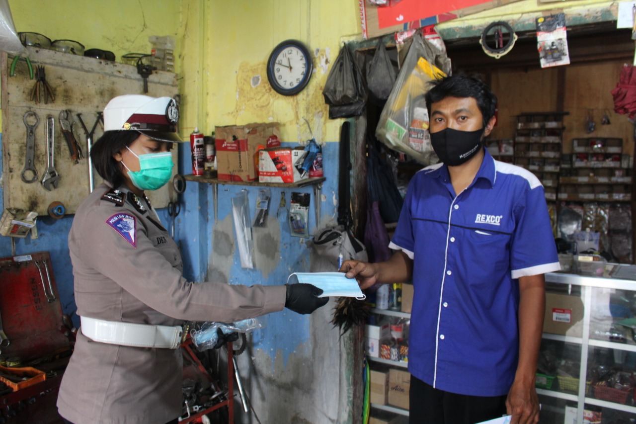 Ari menambahkan selain membagikan masker, personel Satlantas Polres Madiun juga memberikan himbauan tentang protokol kesehatan.