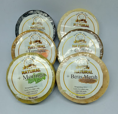 “Bahan – bahan yang kita gunakan selain murni susu kambing, juga bahan campuran lainya 100 persen alami, seperti varian kunyit yang bahannya dari serbuk kunyit asli, varian beras merah juga dari serbuk beras merah.”Terangnya.