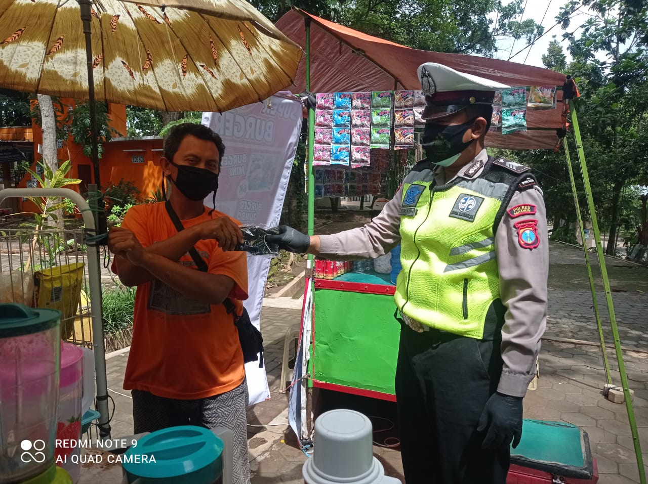 Tak hanya berpatroli memberikan himbauan, petugas juga membagikan masker dan handsanitizer kepada para pengunjung agar meningkatkan kewaspadaan dan keselamatan diri sendiri.
