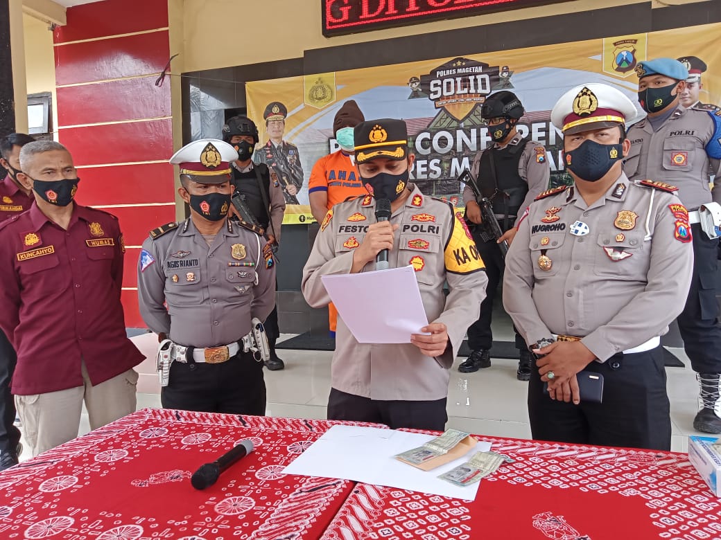 Kolres Magetan AKBP Festo Ari Permana saat pers rilis, Jumat (08/01/2021) mengatakan bahwa tabrakan antara bus Singaraja Putra dan truk pengangkut besi, diakibatkan sopir bus Singaraja Putra mengantuk hingga kehilangan kendali.