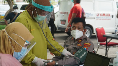 Kapolda Jatim menyebut, setelah Forum Pimpinan Daerah Provinsi Jawa Timur (Forkopimda) Jatim menerima vaksin Covid-19. Vaksinasi berikutnya di fokuskan bagi anggota Polri di Jatim, tenaga kesehatan (nakes) di Polda Jatim.