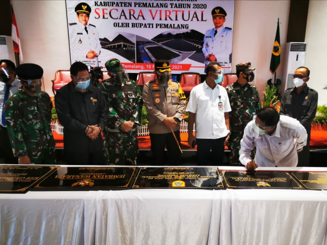 SeputarKita, Pemalang – Sepuluh Proyek Hasil Pembangunan Kabupaten Pemalang Tahun 2020 diresmikan secara virtual oleh Bupati Pemalang Junaedi, didampingi Forkopimda setempat, di gedung DPRD Kabupaten Pemalang. Rabu (10/2/2021).