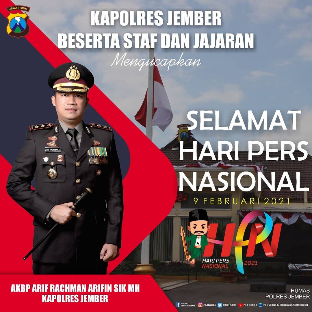 Kapolres Jember Beserta Staf dan Jajaran Mengucapkan Selamat Hari Pers Nasional 2021