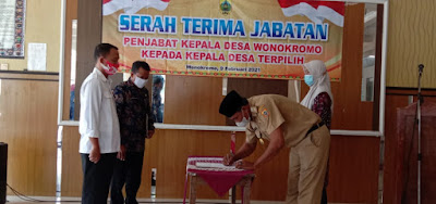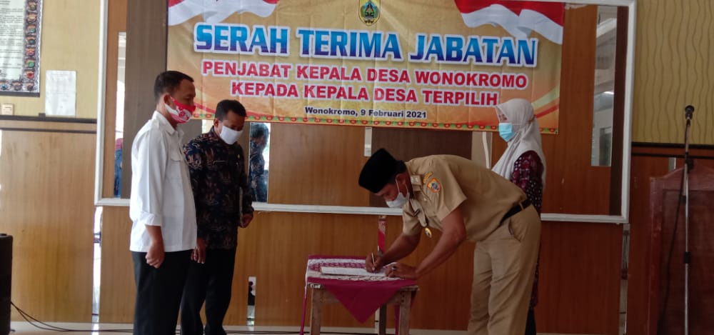 Di hadiri Forkopimca, ketua Tim pengerak PKK, dan tokoh masyarakat, Pemerintah Desa Wonokromo, Kecamatan Comal, Menggelar Serah terima jabatan dari Penjabat Kades (Pj) Sri Widiastuti kepada Kepala desa Imron Asnawi. Selasa (09/02/2021)
