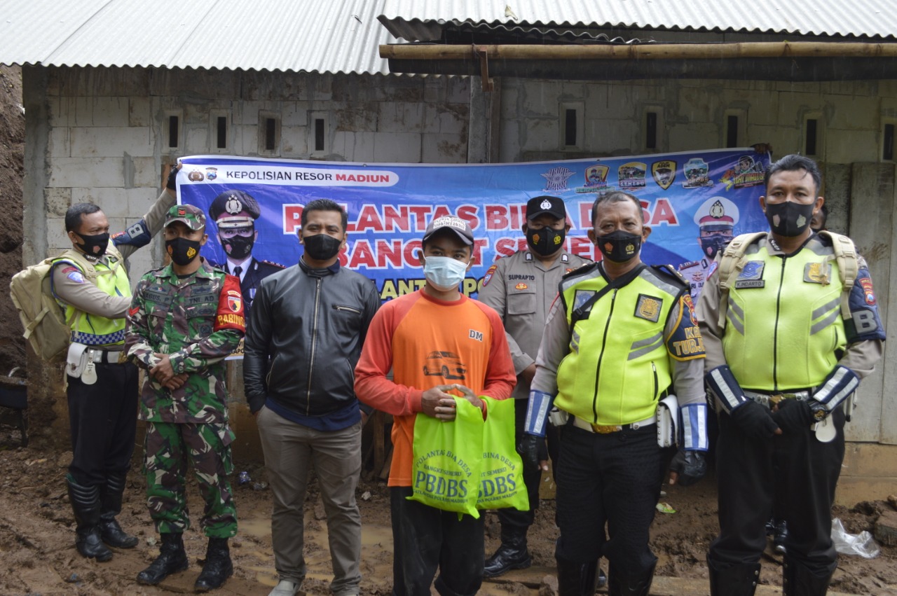 Disaat yang bersamaan Kasatlantas Polres Madiun AKP Ari melaksanakan giat bakti sosial di daerah tersebut karena daerah itu terdampak bencana alam tanah longsor.