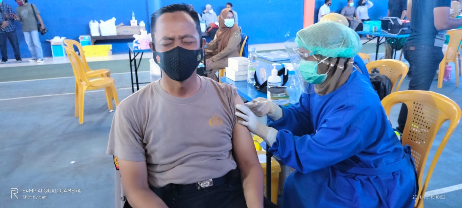 “Sudah dilakukan penyuntikan hari ini, semua anggota dan PNS wajib karena kepolisian termasuk pejabat pelayan publik,” ujarnya.