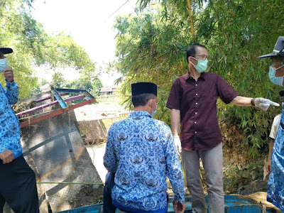 Bupati Magetan Suprawoto meninjau jembatan yang rusak akibat banjir didampingi Sekretaris Daerah, Asisten II, beberapa OPD terkait, Camat Kawedanan, Camat Nguntoronadi, Forkopimca dan Tagana. Rabu (17 Maret 2021).