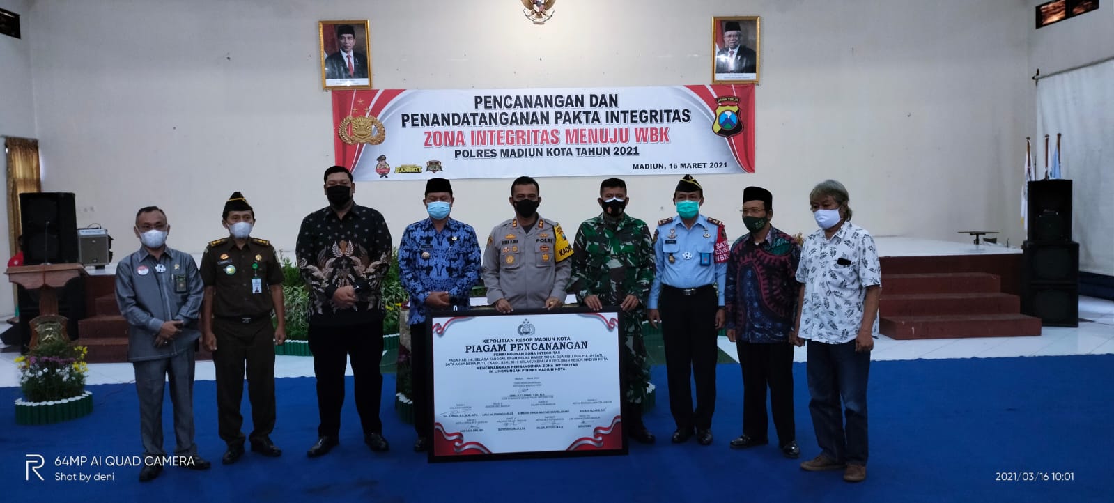 Dengan semangat pelayanan tanpa korupsi, kolusi, nepotisme, hingga pungli semakin yang banyak di Kota Madiun. Setelah Kejaksaan Negeri yang melaksanakan komitmen zona integritas, kini giliaran Polres Madiun Kota yang melakukan hal serupa. Polres Madiun Kota berkomitmen untuk mewujudkan Wilayah Bebas dari Korupsi (WBK) tahun ini.