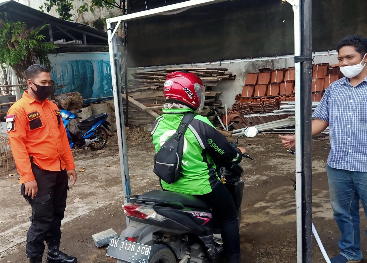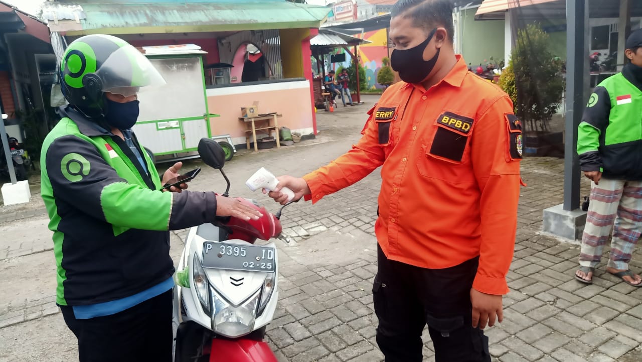 SeputarKita, Jember – BPBD Kabupaten Jember melakukan monitoring kegiatan Untuk pencegahan dan memutus mata rantai covid-19 beserta tim URC dari Gojek Jember melakukan kegiatan positif berupa penyemprotan disinfektan untuk mitra driver online R2 yang berada di wilayah Kabupaten Jember.