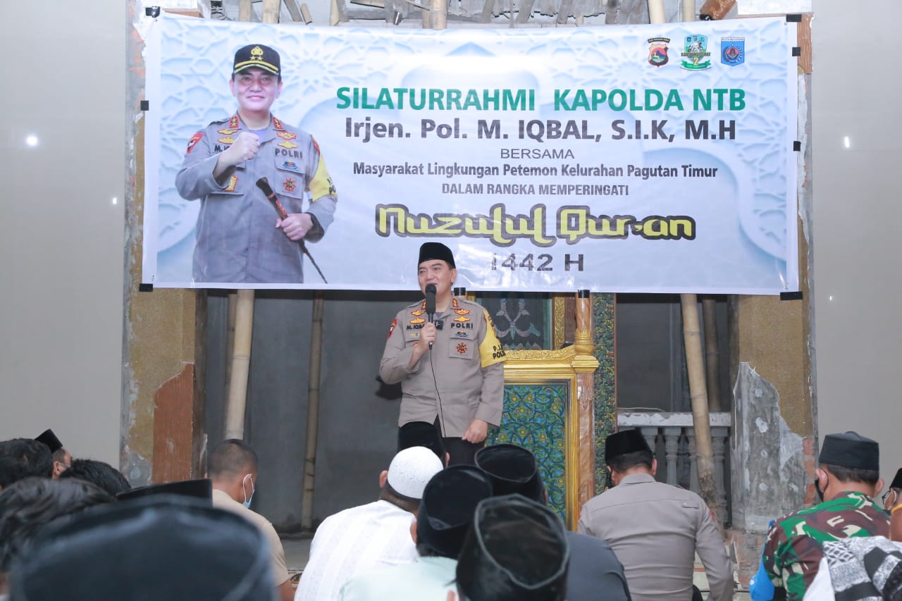 SeputarKita, Mataram – Kapolda NTB Irjen Pol Muhammad Iqbal S.I.K, Melakukan Safari Ramadhan dengan mengunjungi masyarakat. Kali ini Muhammad Iqbal bersilaturrahmi ke masyarakat lingkungan Petemon, Kelurahan Pagutan Timur kota mataram, Rabu (28/04/2021).