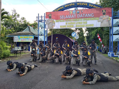 Dengan menggunakan Seragam Brimob, dilengkapi denga Rompi anti peluru, Helm baja, dan Senjata, rombongan berjalan dari pintu gerbang Waduk Bening, dan menyusuri hutan belantara areal latihan sejauh 4 kilo meter.