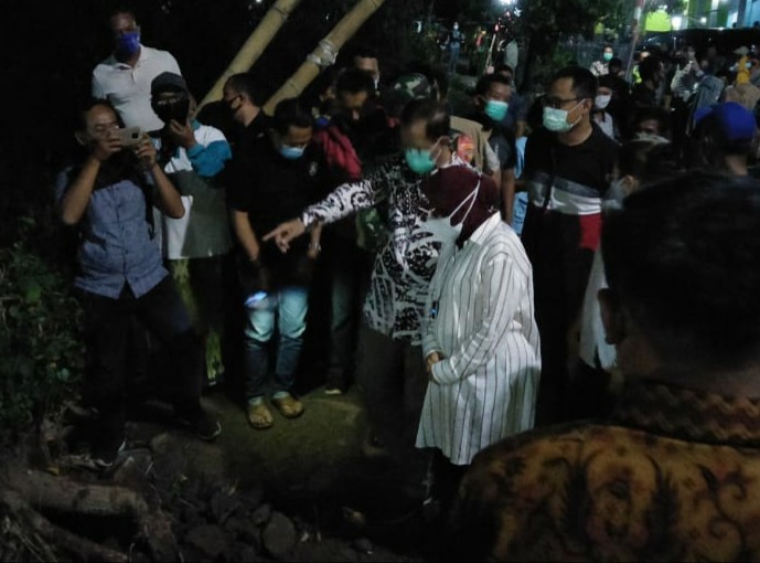 SeputarKita, Magetan – Menteri Sosial Republik Indonesia Tri Risma Harini melakukan kegiatan kunjungan kerja meninjau langsung korban banjir dan jembatan yang rusak akibat pasca bencana banjir yang menimpa wilayah Kecamatan Kawedanan, Kabupaten Magetan. Jumat (2/4/2021) Malam.