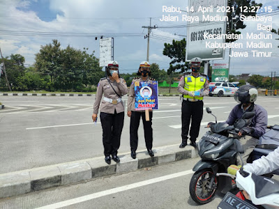 Ditempat berbeda, Kapolres Madiun AKBP Bagoes Wibisono menambahkan dengan bagi masker dan brosur, kami menghimbau masyarakat agar tetap waspada dengan Covid-19 dengan disiplin protokol kesehatan.