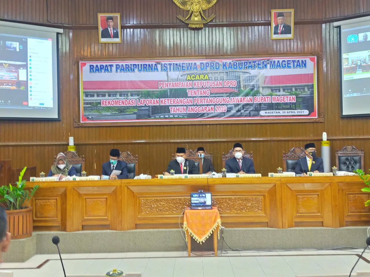 Rapat Paripurna Istimewa, DPRD Magetan Sampaikan Keputusan Tentang Rekomendasi LKPJ Bupati Magetan Tahun Anggaran 2020.