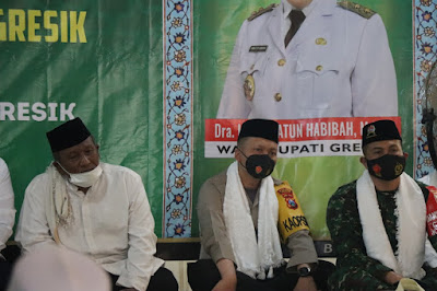 Hadir pula pada acara tersebut Wakil Bupati Gresik Dra. Hj. Aminatun Habibah, M.Pd, KH. Muchtar Jamil, Forkopimcam Kebomas, Forkopimcam Gresik Kota serta Tokoh Agama dan Tokoh Masyarakat dan Kades se Kecamatan Manyar, duduk lesehan di pendopo dengan menjaga jarak.