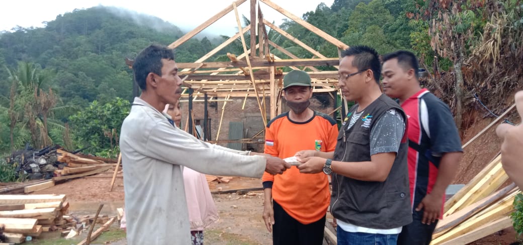 Bantuan tersebut diserahkan langsung kepada korban oleh Solahudin Pendamping PKH Kelumbayan barat.