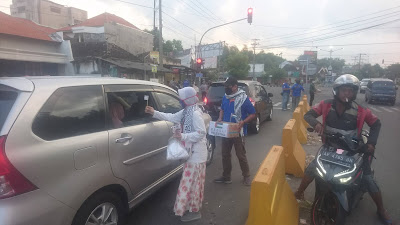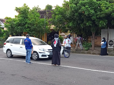 Tak kurang 35 orang melakukan aksi galang dana dengan membagikan masker dan miniatur bendera Palestina di perempatan Kawedanan, Kabupaten Magetan. Minggu, (16/05/2021)