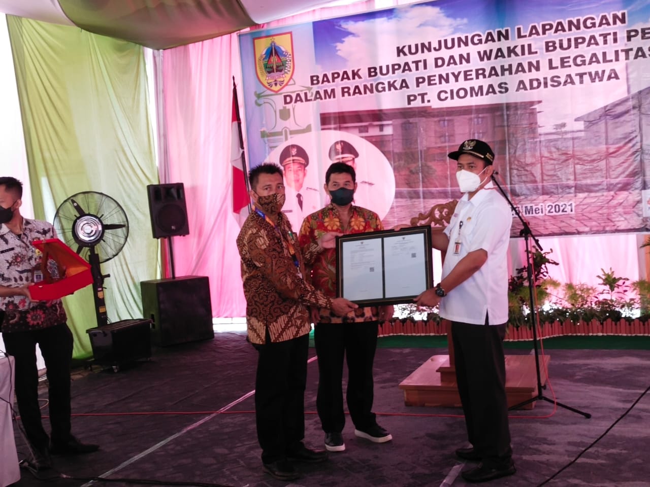 Dalam kunjungan tersebut, Bupati Pemalang menyerahkan secara simbolis perijinan PT. Ciomas Adisatwa Surat ljin Usaha Industri (IUI), Nomor Induk Berusaha (NIB) dan SIUP yang diterbitkan oleh DPMPTSP Kabupaten Pemalang.