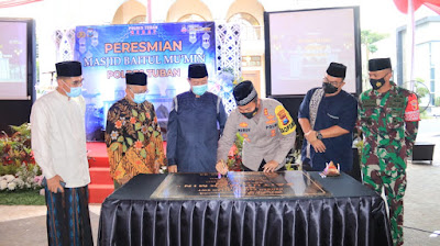 Sebuah Masjid Baitul Mu’min berhasil diwujudkan swadaya donatur dan partisipasi pihak lain, yang digagas langsung Kapolres Tuban AKBP Ruruh Wicaksono, sejak 2020-2021 atau delapan bulan lamanya proses pembangunan Masjid berjalan menelan anggaran senilai Rp7 miliyar dan tepat di akhir bulan suci ramadan 1442 H diresmikan, Sabtu (8/5/2021).