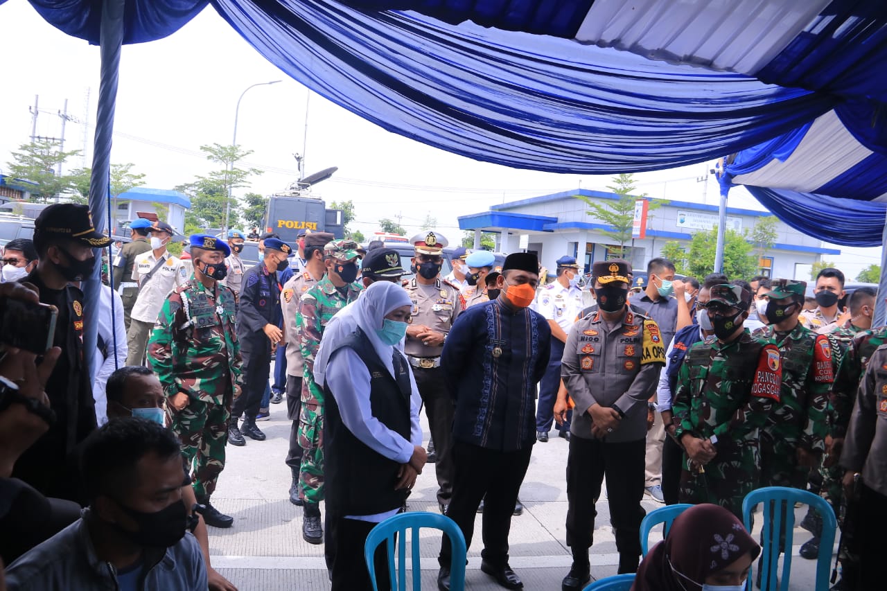 “Forkopimda Provinsi Jatim melakukan pengecekan penanganan PMI di Kab. Madiun dan juga sekaligus pengecekan kegiatan penyekatan yang dilakukan personil Polri, TNI dan instansi terkait dalam mendukung kebijakan pemerintah tentang larangan mudik lebaran 2021,” kata Kapolres.