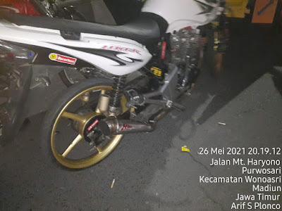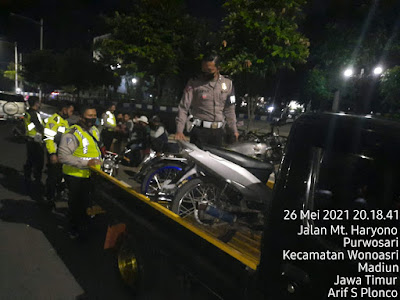 Dalam kegiatan razia yang dilaksanakan Rabu malam (26/5), setidaknya ada lima kendaraan sepeda motor berknalpot brong yang diamankan. Untuk selanjutnya, para pelanggar tersebut akan dikenai tindakan tilang dan barang bukti sepeda motor diamankan di Polres Madiun.
