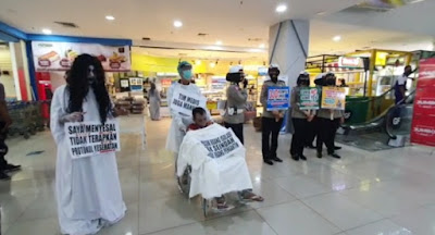 “Kegiatan teatrikal terkait penyebaran virus Covid 19 mari kita sama sama mencegah mewabahnya virus Covid 19 di wilayah kota Madiun, kegiatan ini akan kita lakukan selama duaa hari karena penambahan kasus pasien yang terpapar di wilayah kota Madiun tinggi menurut data Yang di terima pasien yang meninggal dunia saat ini ada 216 jiwa kemudian untuk jumlah total Pasien yang positif terpapar ada 2242 jiwa sembuh 26 jiwa dirawat 70 jiwa meninggal 170 jiwa.” Terangnya.